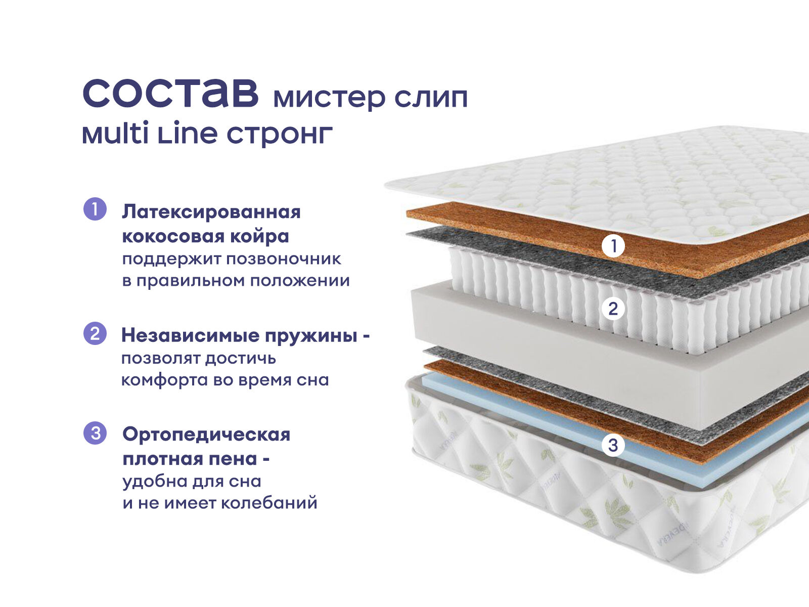 Практичный ортопедический матрас с двумя уровнями жёсткости и усиленной поддержкой. Модель создана для комфортного сна с учётом анатомии тела. Усиленный пружинный блок с 1000 независимых пружин на спальное место и натуральные наполнители обеспечивают надёжную поддержку и долговечность, выдерживая до 150 кг на спальное место.