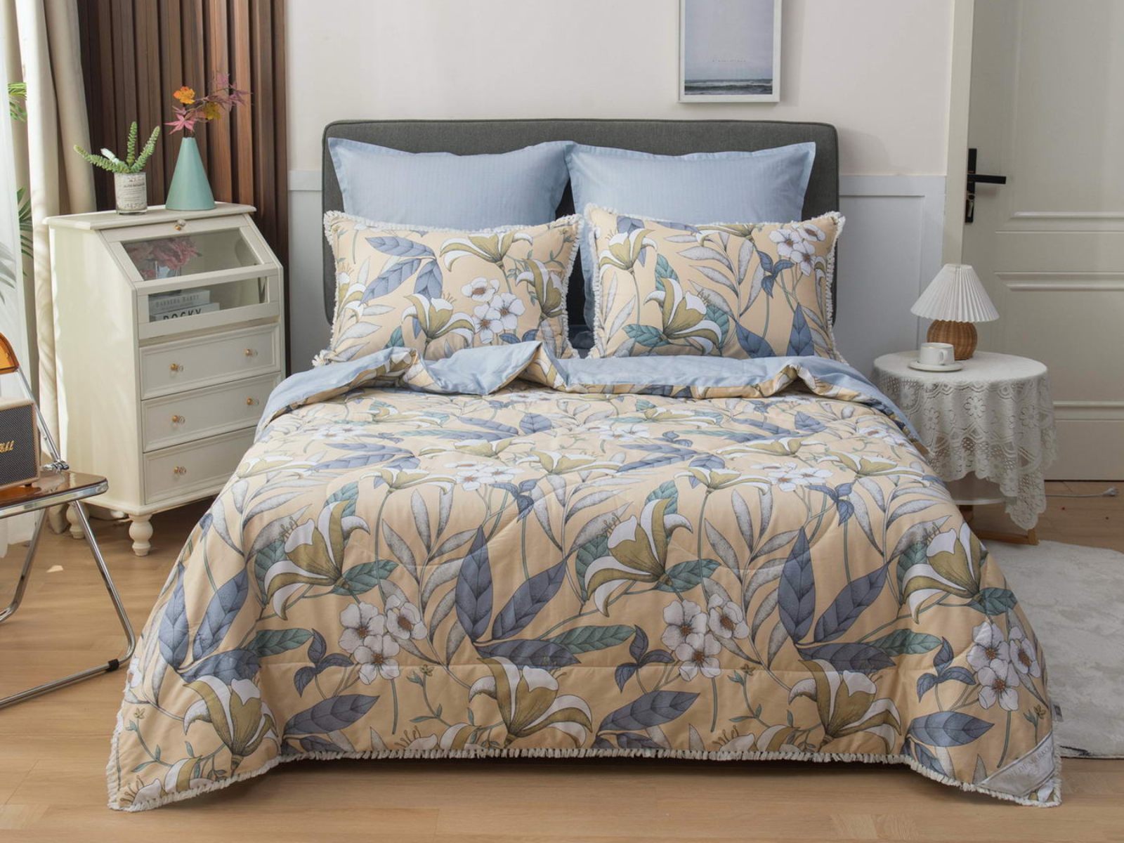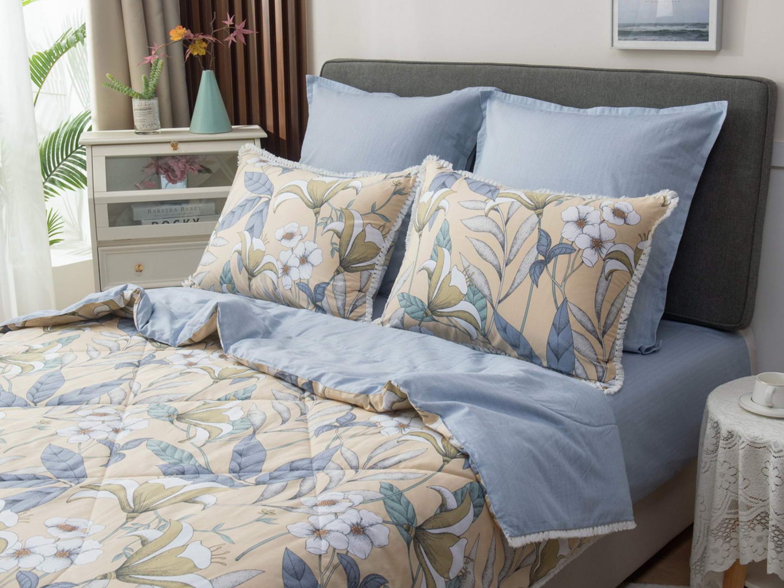 В комплекты комфортеров с одеялом Бернадетт входят наволочки, простыня и легкое всесезонное одеяло. Оцените это современное и очень удобное решение, которое идеально подходит тем, кто не любит возиться с пододеяльниками.