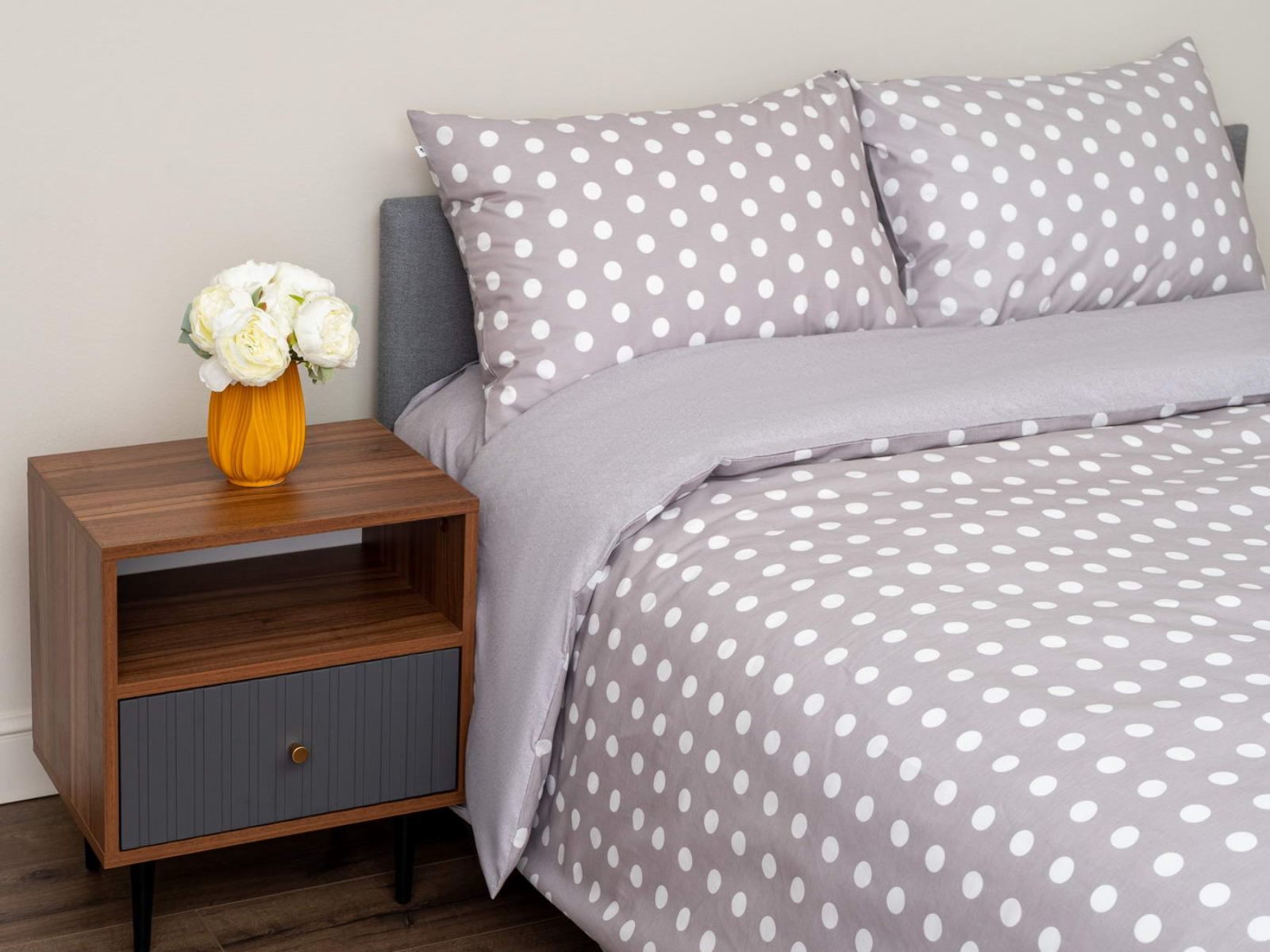 Комплект Мэгги легко стирается в обычной машине в бережном режиме и также легко гладится.