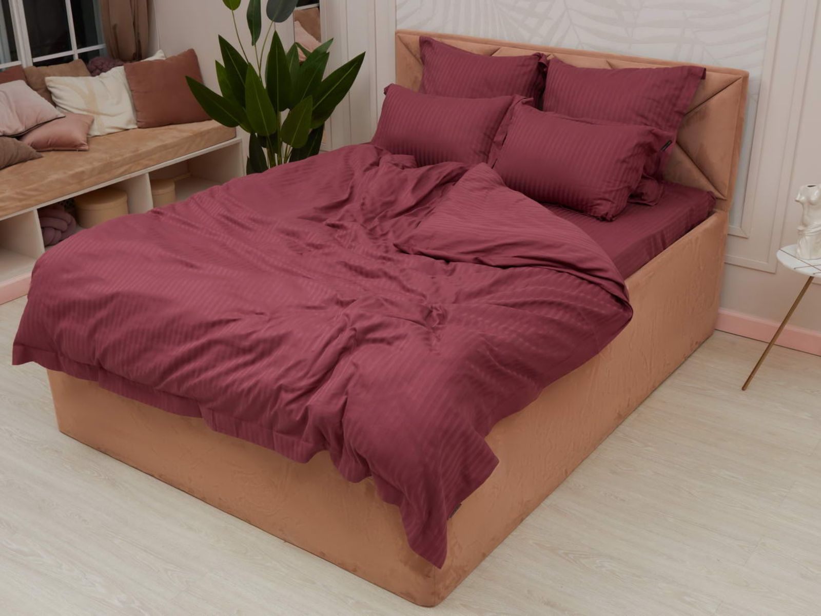 Постельное белье Моне, изготовленное из высококачественного страйп-сатина, станет украшением Вашей спальни. Комплекты представлены в 17 оттенках: от пастельных, до ярких насыщенных тонов. Такая палитра никого не оставит равнодушным. Особое плетение ткани образует узор в виде чередующихся полос, это придает постельному белью изысканность, гладкость и блеск.