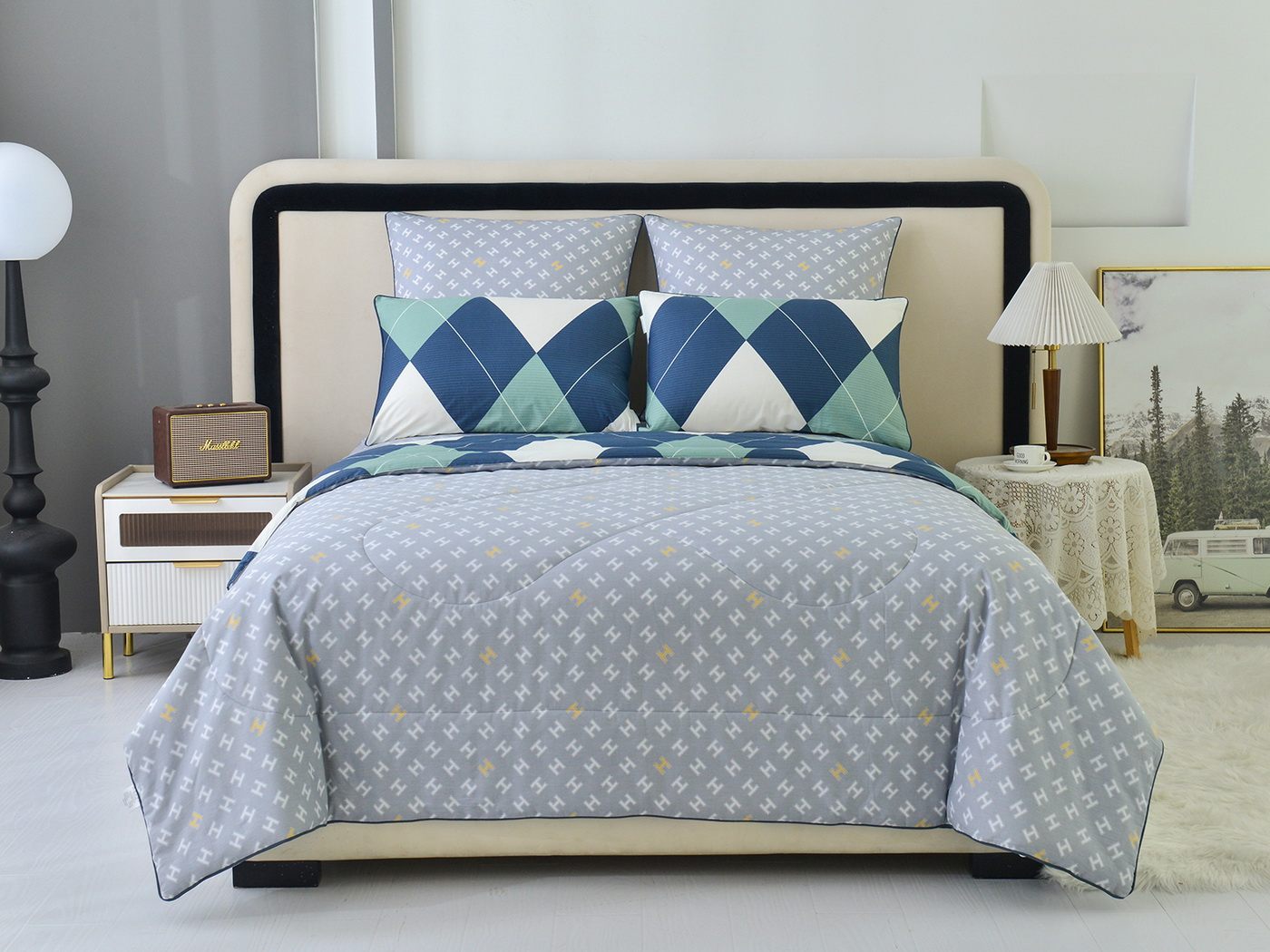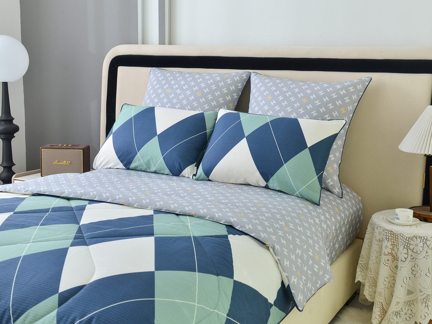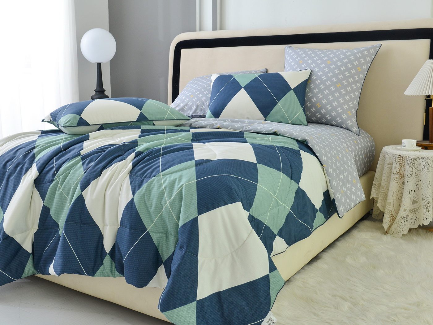 Особенность: двусторонняя модель, наволочки и одеяла декорированы кантом.