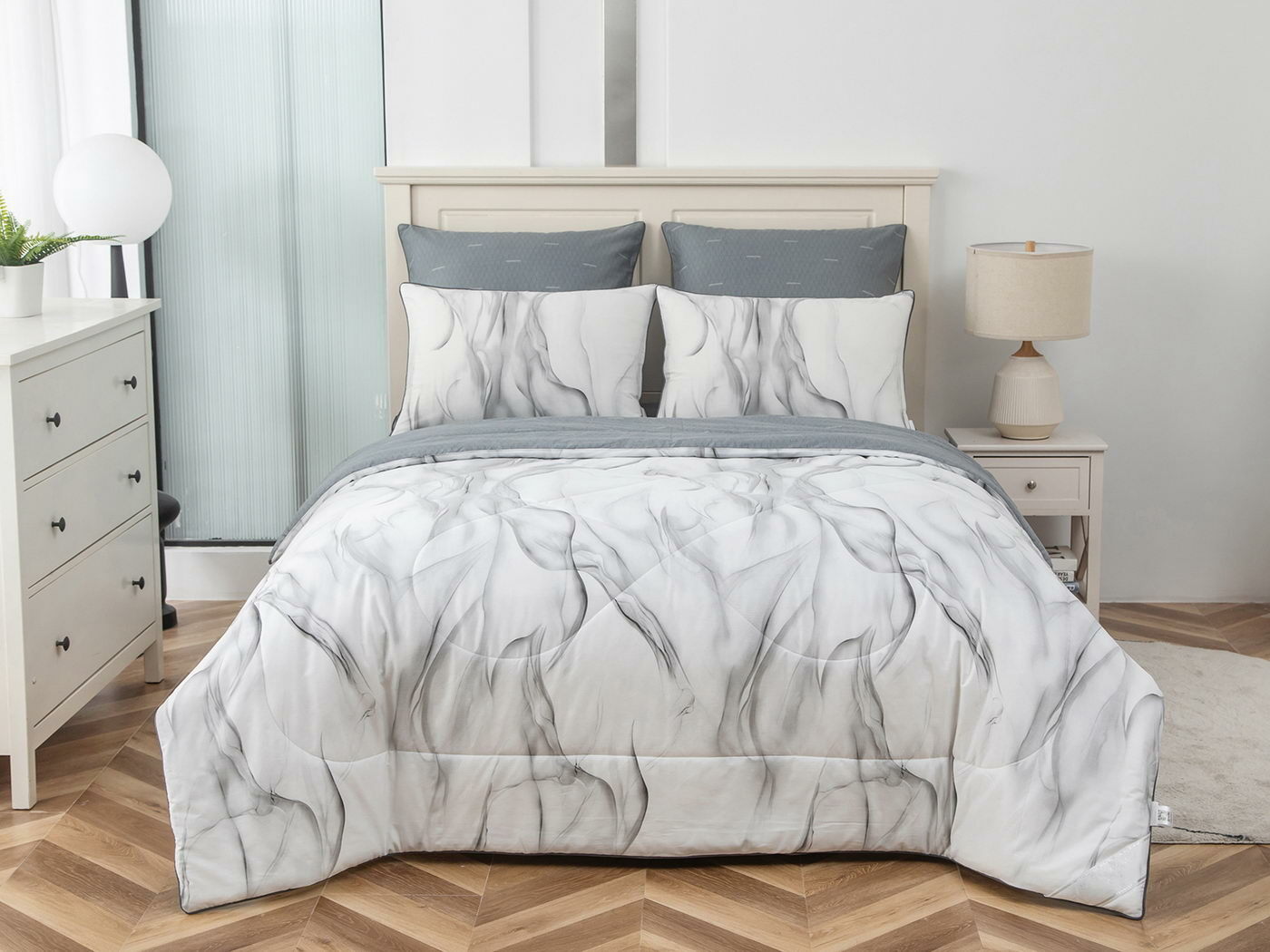 Особенность: двусторонняя модель, наволочки и одеяла декорированы кантом.