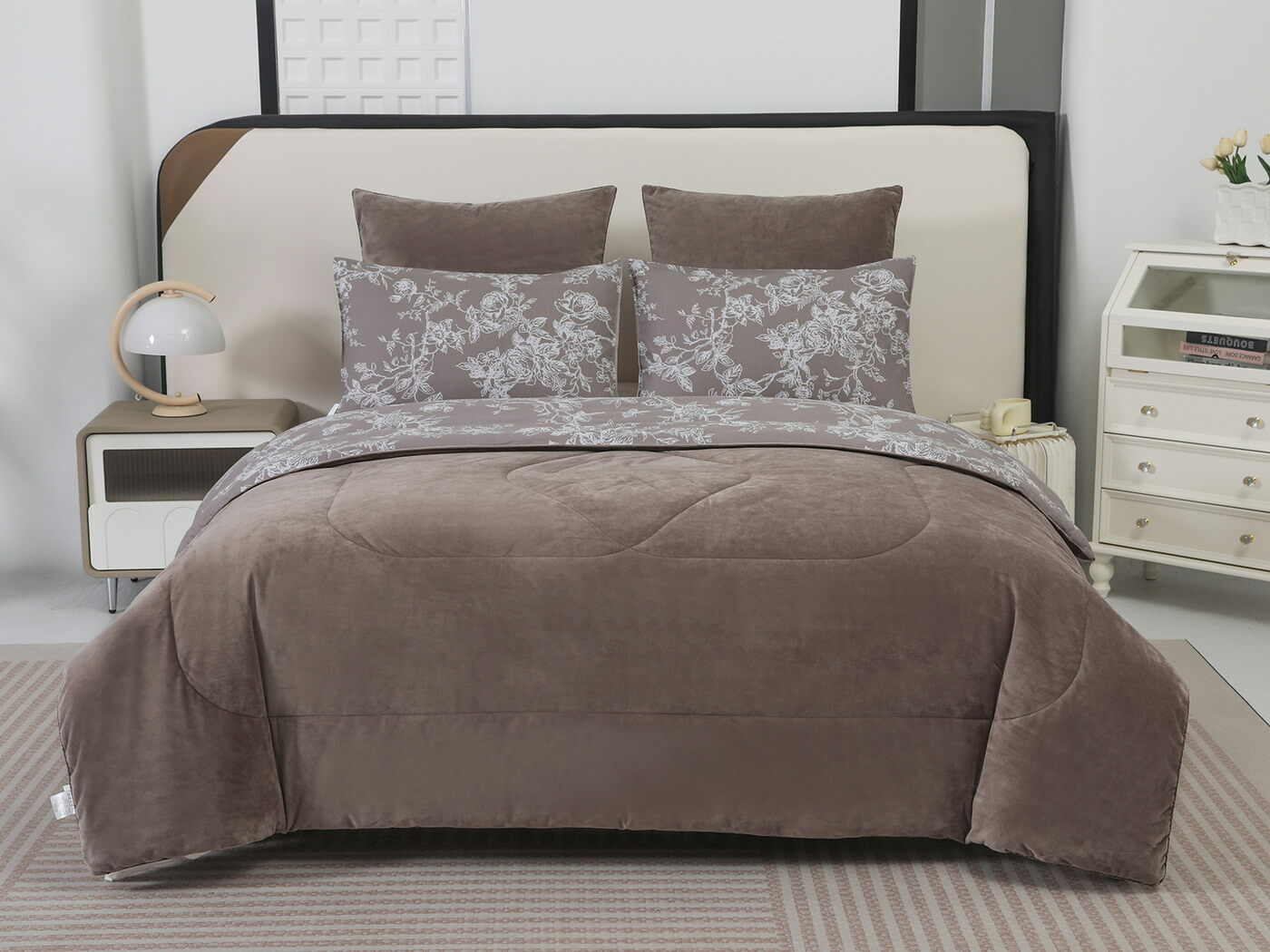 Новая коллекция комплектов «Роберто» с одеялом из однотонного велюра и принтованного сатина.