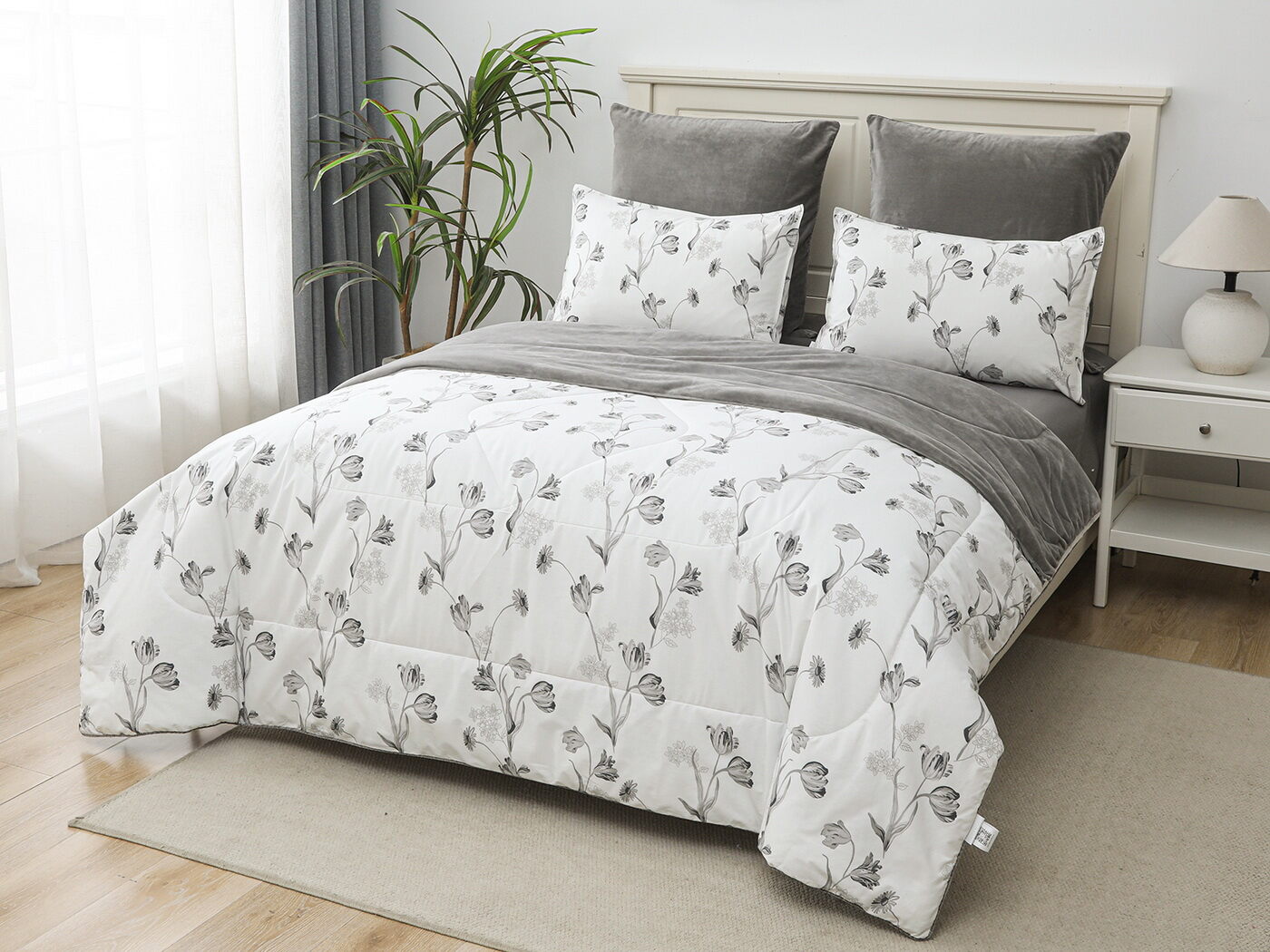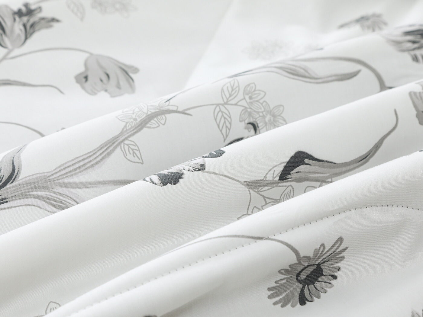 Обратная сторона одеяла – принтованный сатин натуральный хлопковый материал. На ощупь нежная и шелковистая, при этом комфортная и прочная ткань.
