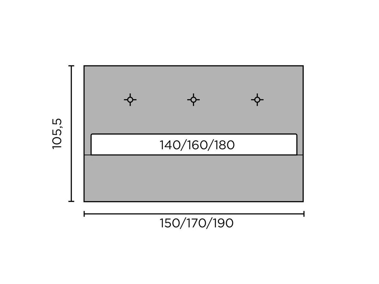 Кровать оснащена основанием с ламелями и подъемным механизмом. Рекомендуемая высота матраса до 30 см, вес матраса до 50 кг.