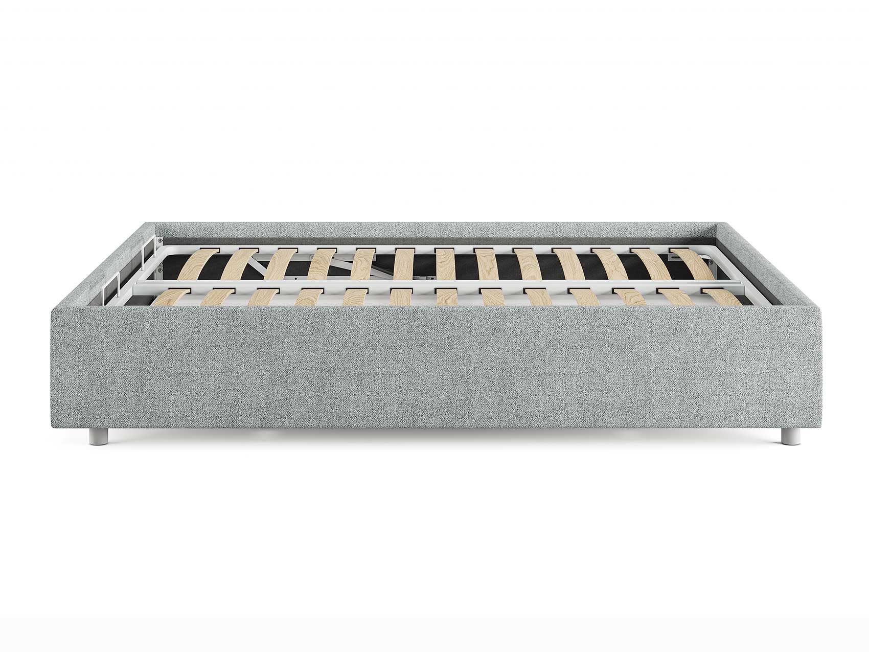 Кровать комплектуется металлическим основанием (без опор), которое имеет 13 рядов встроенных березовых ламелий на каждое спальное место, обеспечивая равномерное распределение нагрузки.