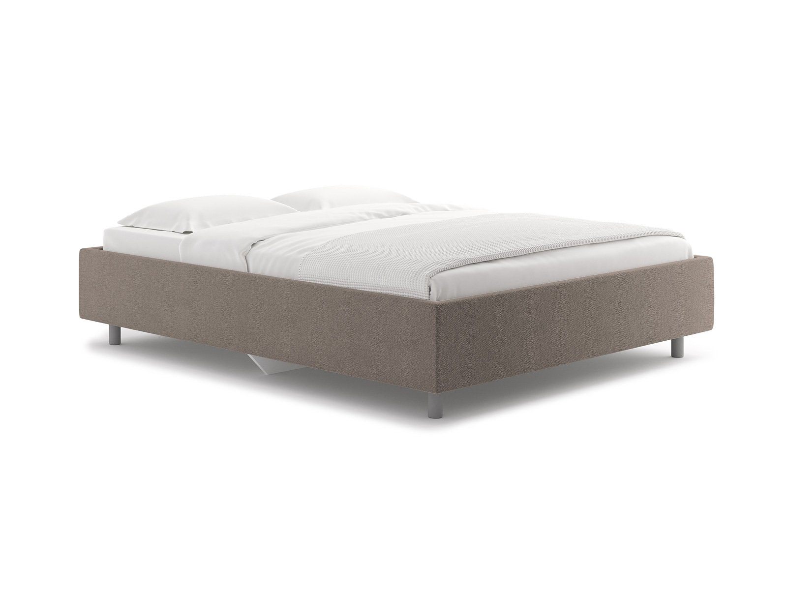 Стильная интерьерная кровать без спинки. Модель изготовлена из ДСП. Преимуществом кровати являются съемные чехлы царг, что позволяет легко ухаживать за обивкой или менять цвет кровати в зависимости от смены интерьера.