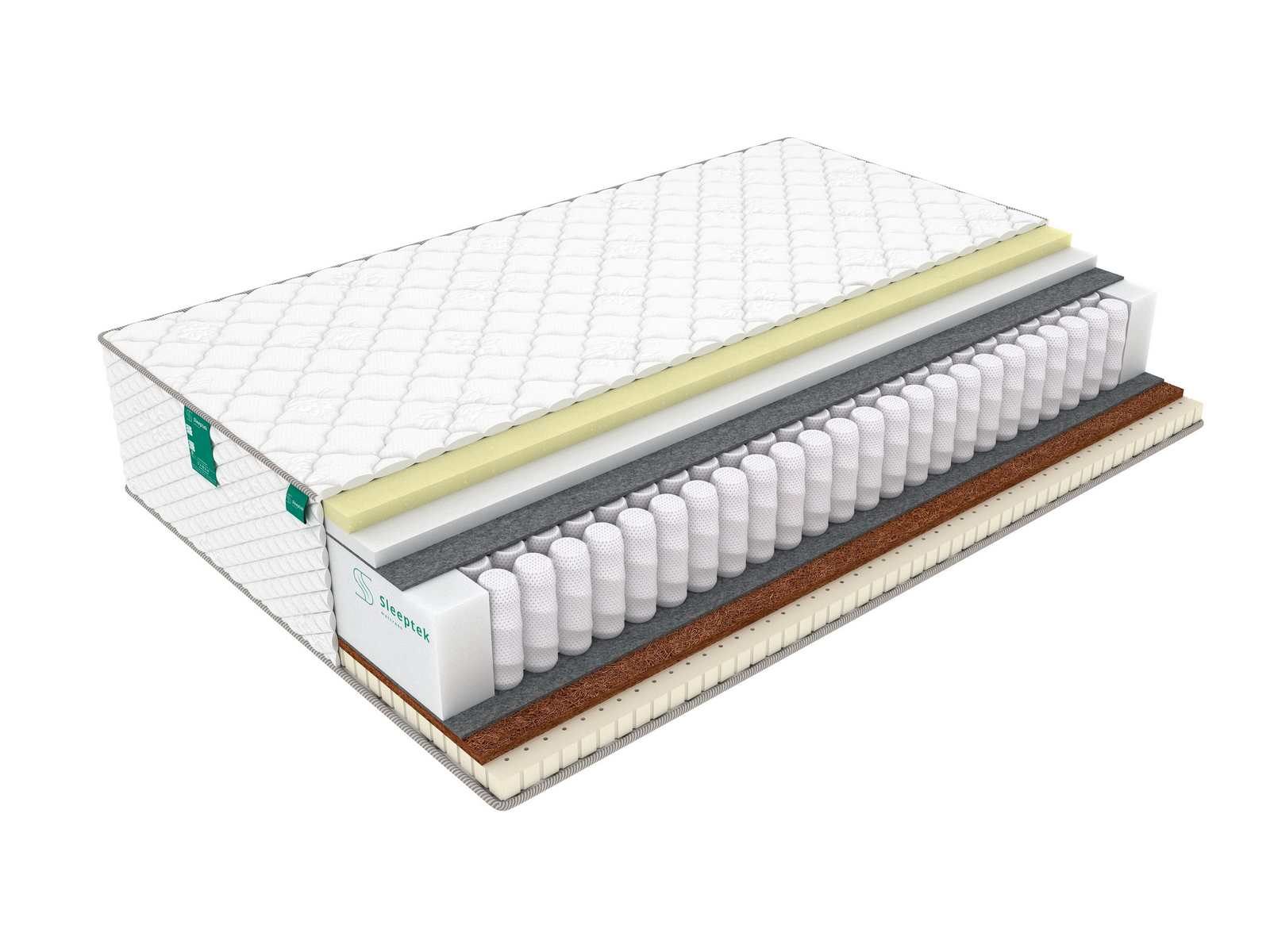 В качестве наполнителя с умеренно мягкой стороны использована комбинация койры кокоса и натурального латекса. Такое сочетание помогает одновременно усилить ортопедические качества блока пружин и придать спальному месту комфорт.