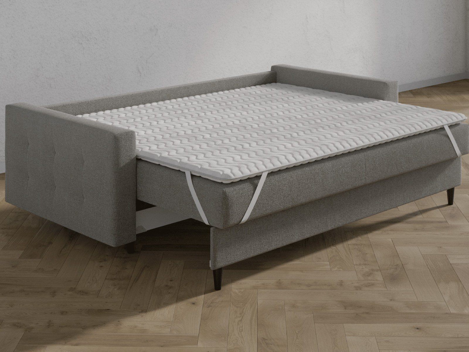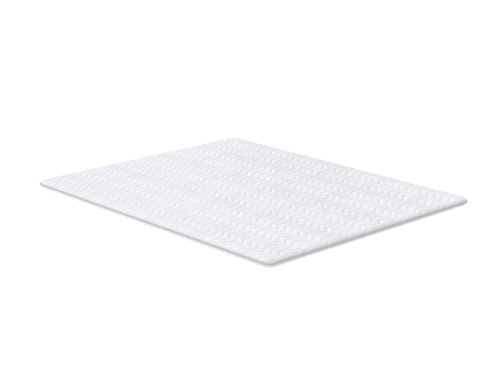 Топпер изготовлен из натурального латекса и кокосовой койры. Нижний слой выравнивает поверхность спального места, а более мягкий и комфортный верхний слой обеспечивает поддержку спины. Крепление осуществляется с помощью резинок по четырём углам.
