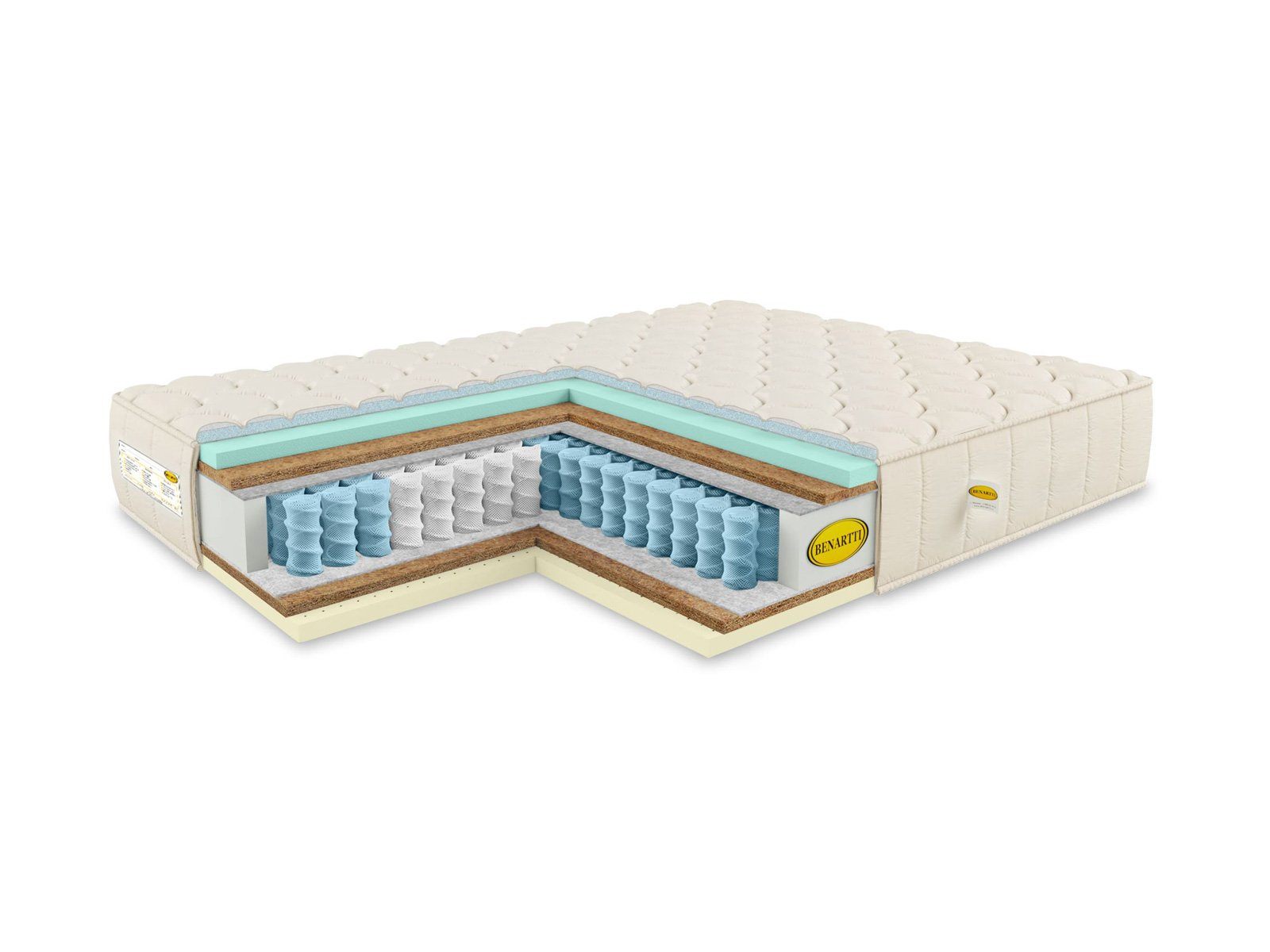Слои натурального с одной стороны и искусственного латекса с другой приятно смягчают поверхности матраса. Они обеспечивают комфорт и адаптивность. Благодаря их работе матрас бережно подстраивается под анатомию человека, что приводит к быстрому расслаблению и повышению качества сна.
