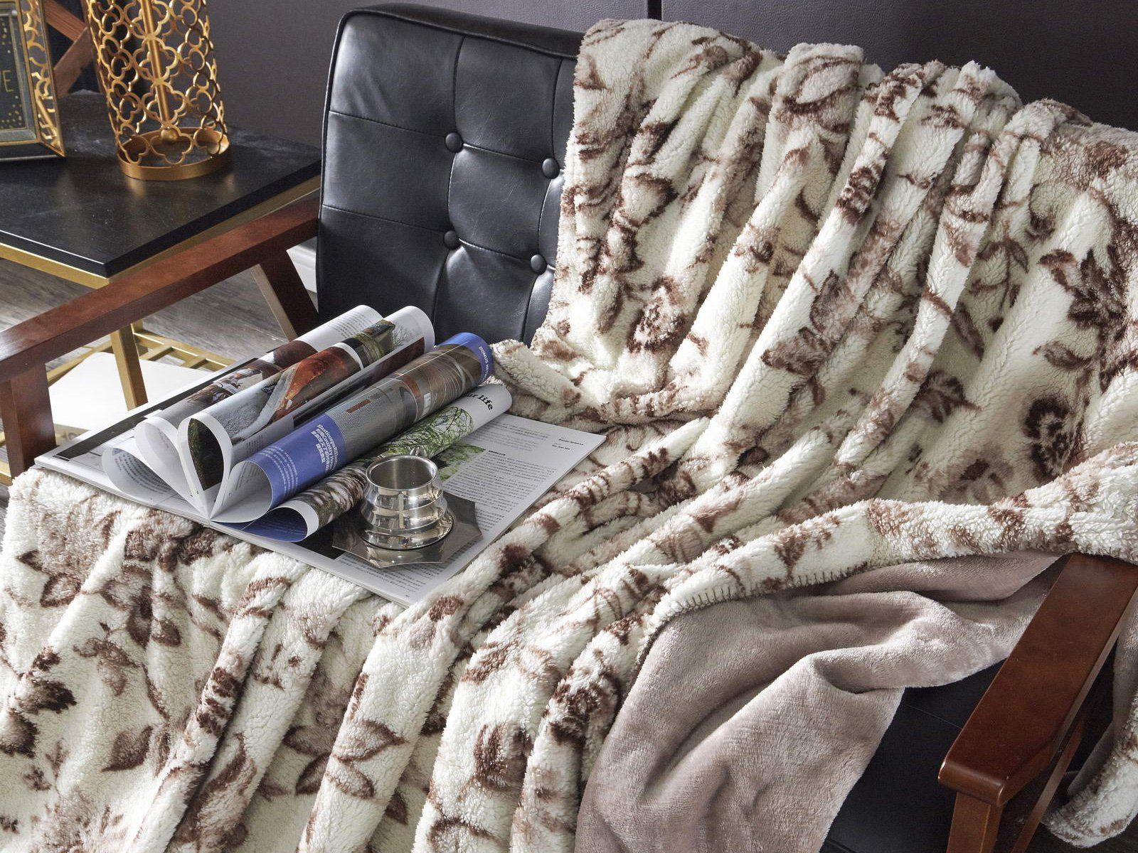 Плед двусторонний: с одной стороны однотонный, с другой - рисунок прованс.