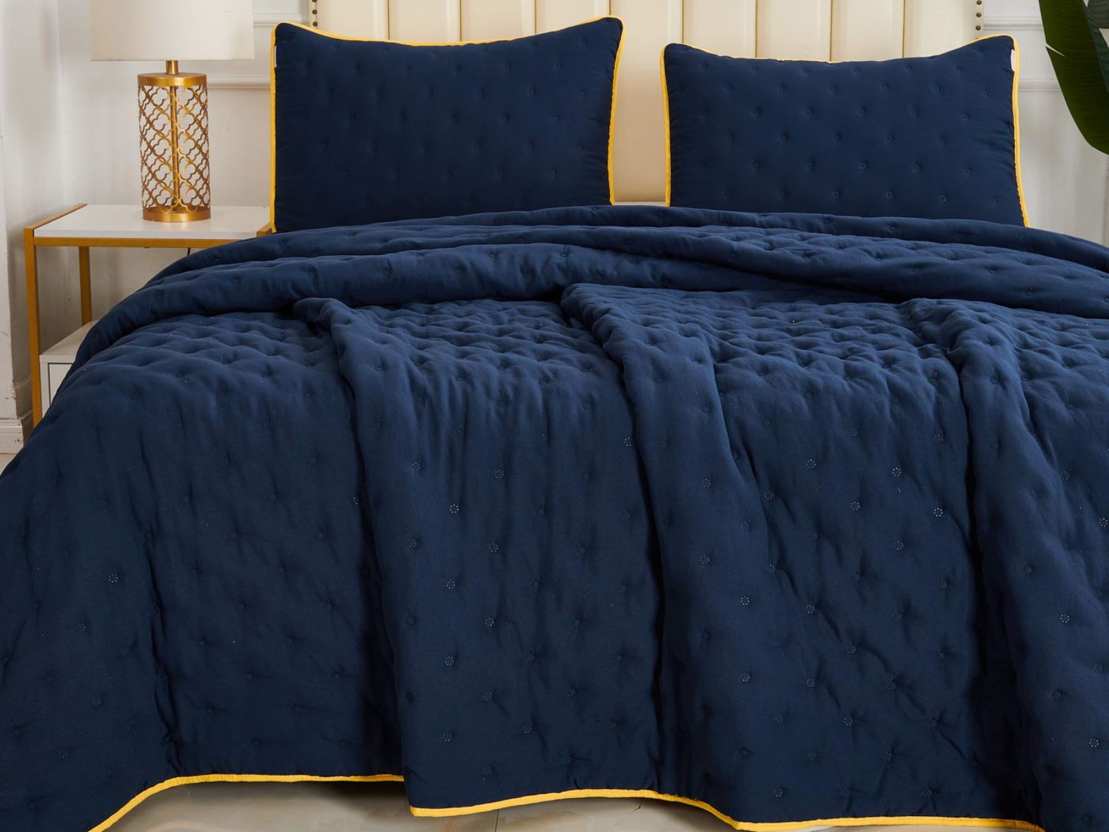 Двусторонние стеганные покрывала Броуди легкие и прочные. В комплект входят покрывало и одна либо две наволочки (50х70 см) из аналогичного материала в зависимости от размера. При желании покрывало можно использовать как легкое одеяло.