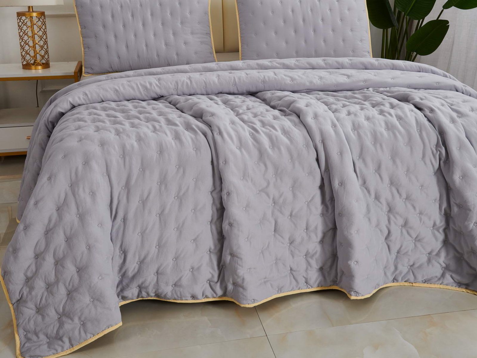 Двусторонние стеганные покрывала Броуди легкие и прочные. В комплект входят покрывало и одна либо две наволочки (50х70 см) из аналогичного материала в зависимости от размера. При желании покрывало можно использовать как легкое одеяло.