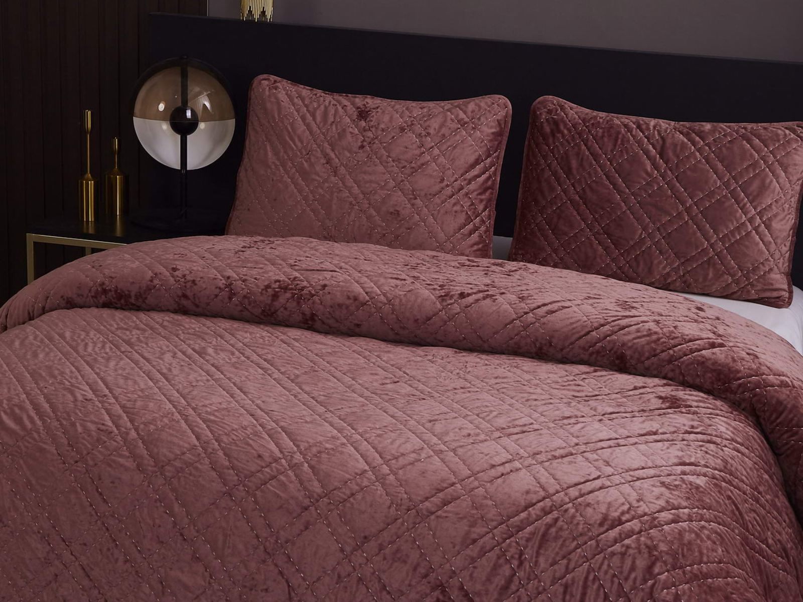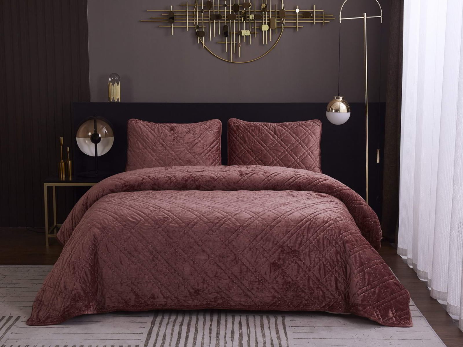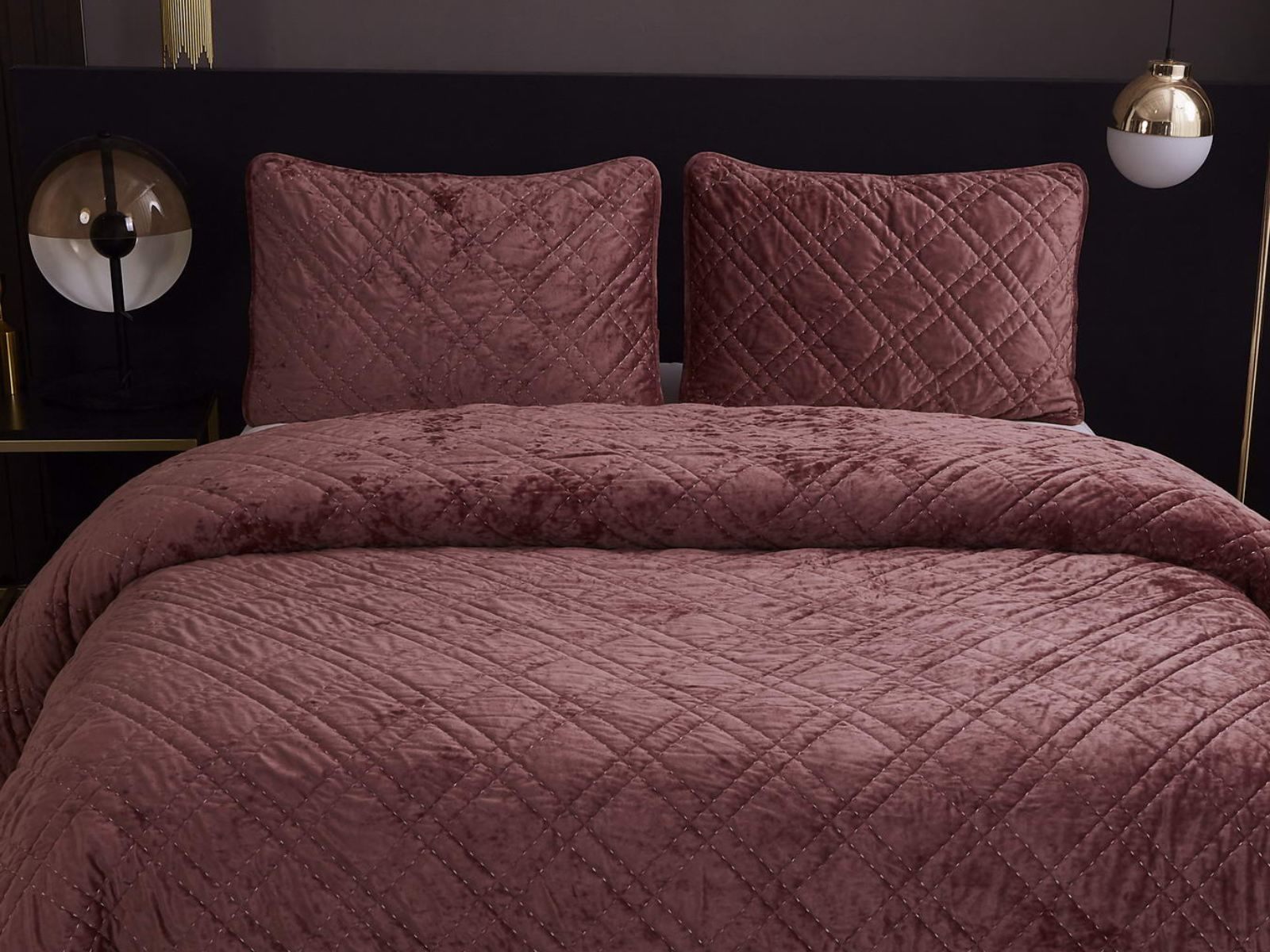 Покрывало Селена выполнено в девяти оттенках: пудра, антрацит, беж, изумруд, капучино, пепел роза, серебро, стоун, терракот. Они подойдут практически для любого интерьера, от классического, до модерна или романтического. Стеганое бархатное покрывало будет необыкновенно смотреться на вашей постели. В комплект входят покрывало и одна либо две наволочки (50х70 см) из аналогичного материала в зависимости от размера.