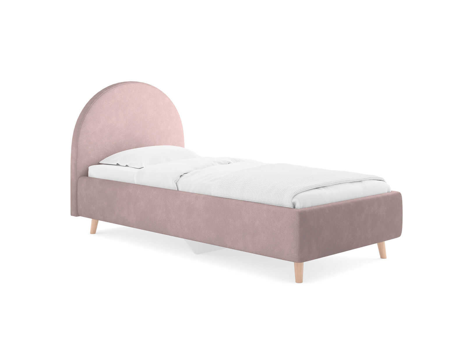 Подростковая кровать с закругленным изголовьем — это идеальное решение для создания уютного и стильного пространства в комнате. Элегантные линии изголовья не только придают изделию изысканный вид, но и добавят мягкость в интерьер, создавая уютную обстановку. По умолчанию задняя спинка кровати обивается тканью, что позволит расположить кровать не только к стене. Основание кровати на высоких деревянных ножках. Благодаря увеличенной высоте позволяют осуществлять легкую уборку под кроватью, даже с помощью робота-пылесоса. При необходимости кровать может быть укомплектована трансформируемым основанием Aquarius.