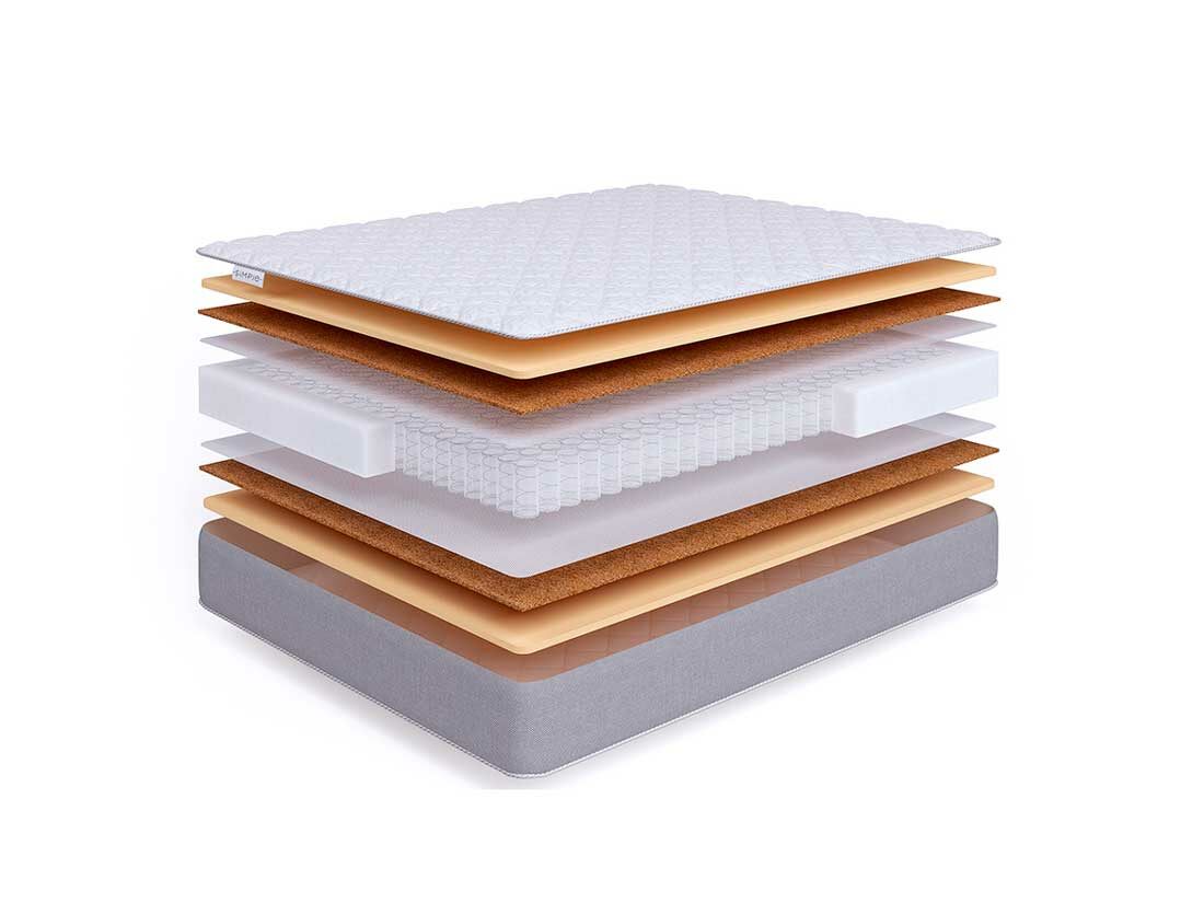 Натуральная кокосовая койра состоит из кокосовых волокон, пропитанных латексом. Она придает матрасу жесткость и упругость. Кокосовая койра также имеет превосходные ортопедические и эксплуатационные свойства.
