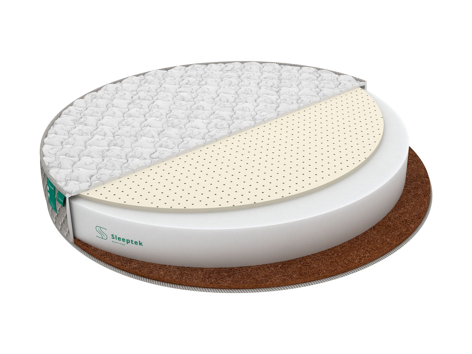 И койра, и латекс являются безопасными, экологически чистыми материалами, обладают долгим сроком службы, устойчивы к накоплению пыли и влаги, хорошо вентилируются и способствуют правильной терморегуляции. Между слоями наполнителей находится блок ортопедической пены высотой 18 см, который придает модели устойчивость. Пена, как и наполнители, полностью безопасна для здоровья и гипоаллергенна.