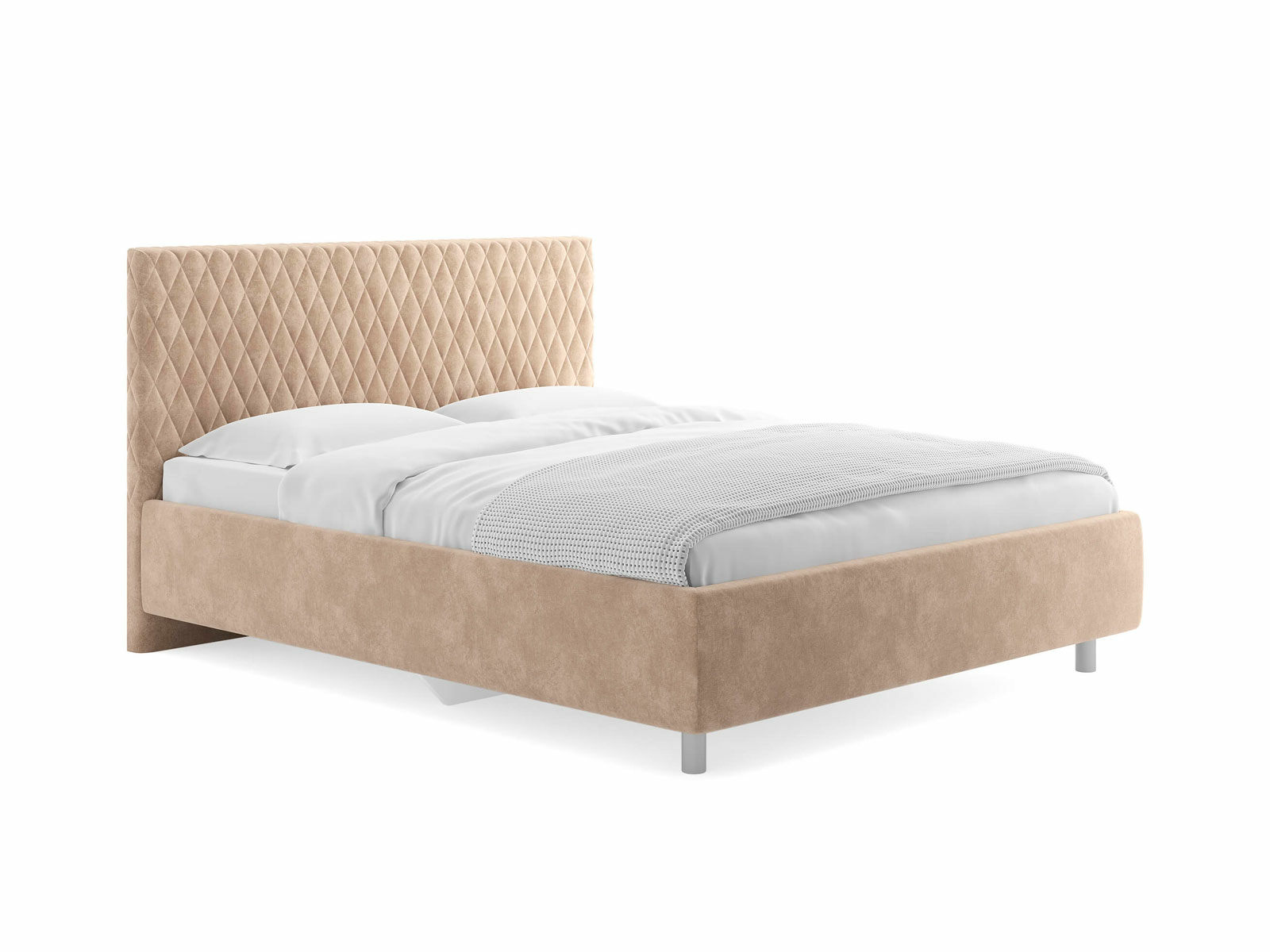 Прямую форму изголовья декорирует мягкий чехол. Чехол изголовья простеган ромбами среднего размера, что добавляет модели объем и подчеркивает выразительность. Кровать Stella лаконична, нейтральна, не берет на себя много внимания поэтому органично впишется в большинство современных интерьеров. Увеличенный просвет от пола позволяет облегчить уборку под кроватью, в том числе роботом–пылесосом. Царги кровати выполняются по технологии съемного чехла.